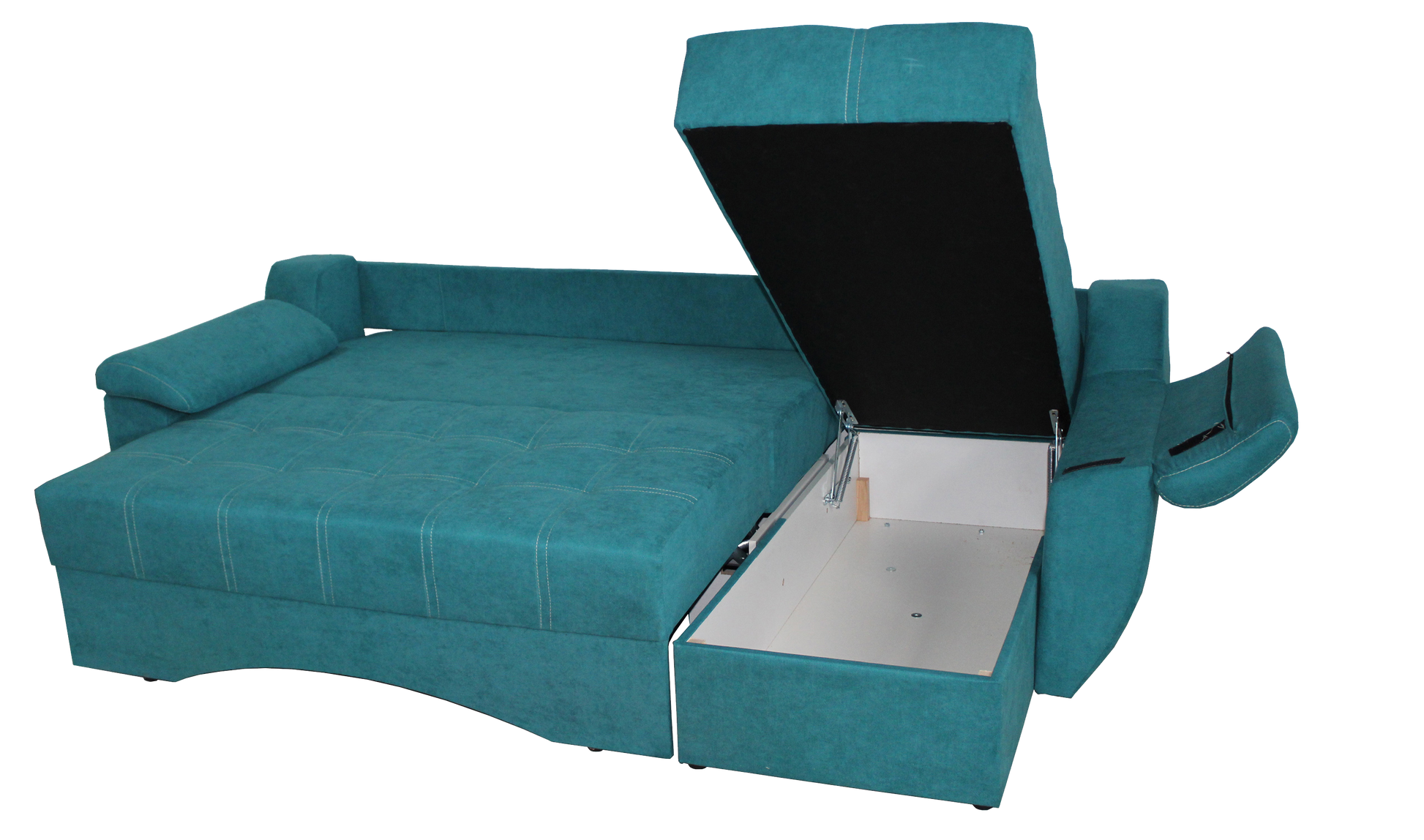 Dimensiunile generoase și lada de depozitare a acestui colțar oferă spațiu suficient atât pentru relaxare, cât și pentru depozitarea accesoriilor de dormit.
