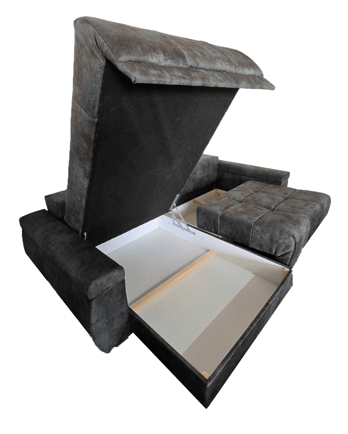 Dimensiunile generoase și lada de depozitare a acestui colțar oferă spațiu suficient atât pentru relaxare, cât și pentru depozitarea accesoriilor de dormit.