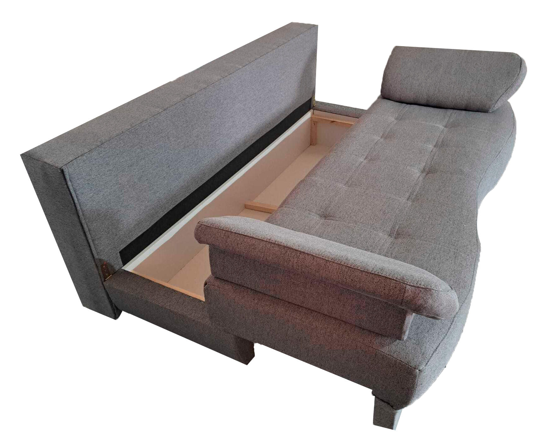 Canapeaua extensibilă Confort, un model foarte apreciat în rândul clienților care își doresc o canapea pe care să doarmă confortabil. Cu un sistem de pat fiabil și ușor de utilizat, canapeaua se extinde prin culisarea șezutului în față și rabatarea spătarului. De asemenea, dispune de spațiu pentru depozitare pe toată suprafața canapelei și include trei perne.