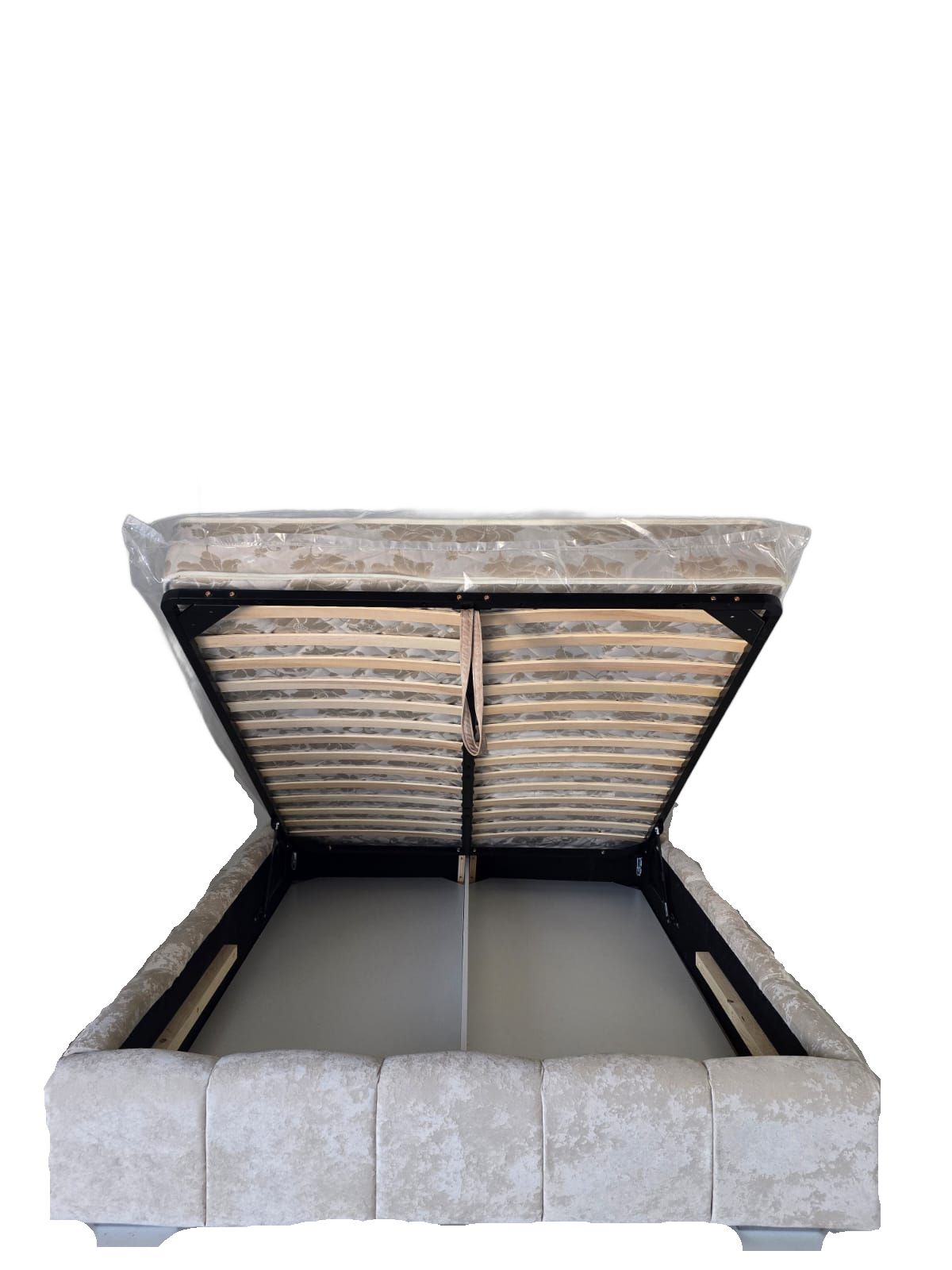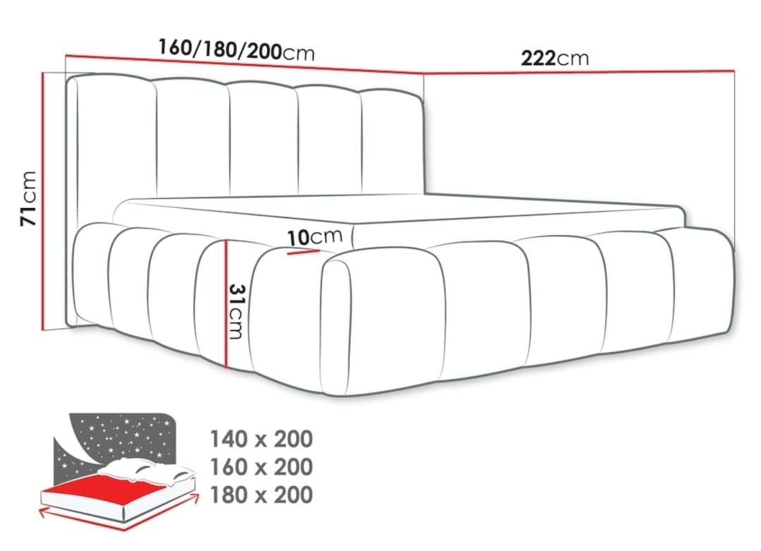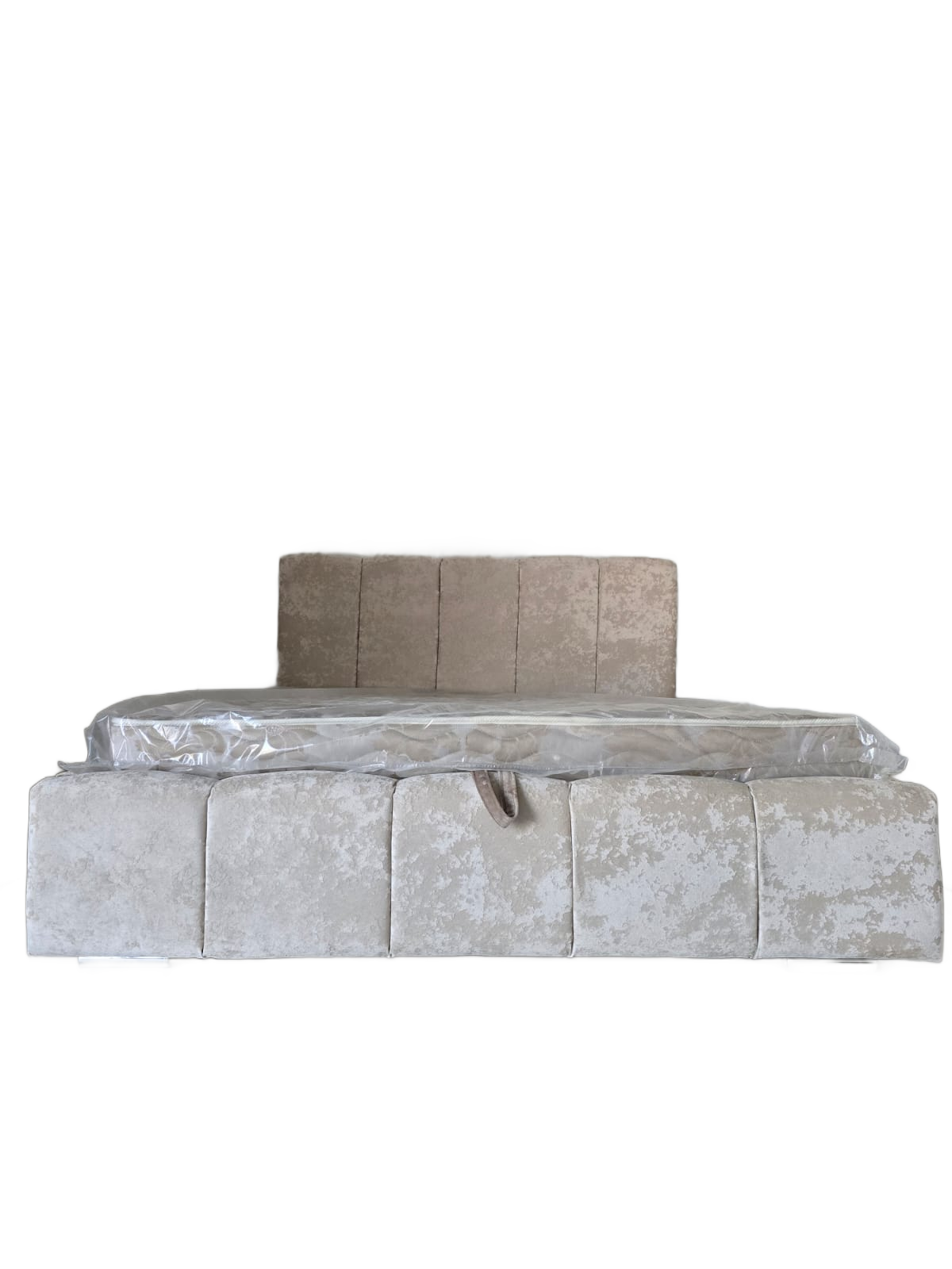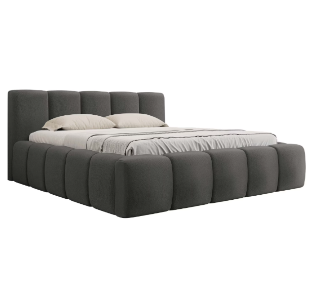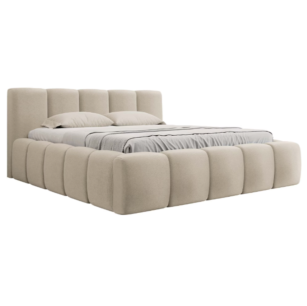 Patul Vlad impresionează prin designul său modern și robust, tapițat într-o nuanță deschisă ce aduce luminozitate și rafinament în orice dormitor. Spătarul înalt, cu linii verticale, oferă susținere confortabilă, iar baza capitonată adaugă volum și stabilitate.