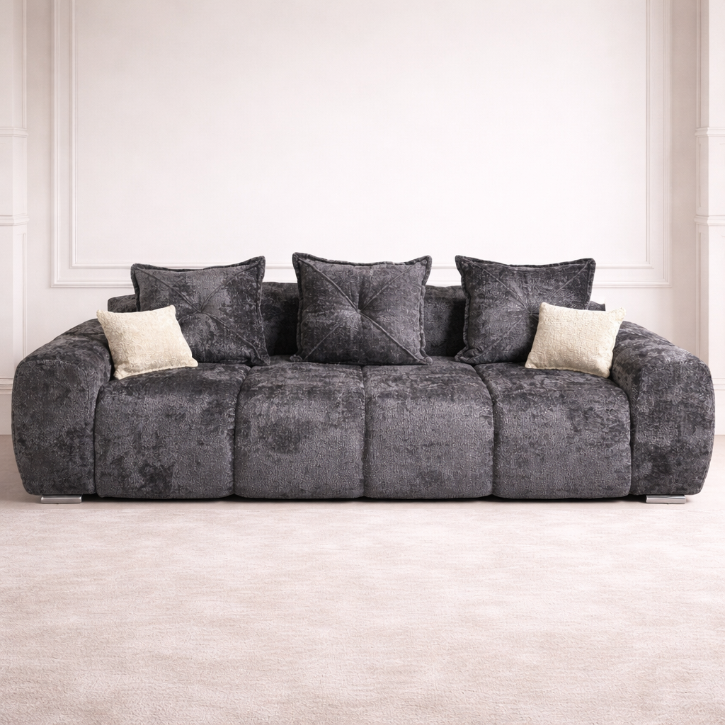 Tapițeria din stofă moale, densă și plăcută la atingere conferă o senzație premium și o rezistență ridicată la utilizare zilnică. Șezutul generos și pernele bine capitonate asigură o susținere excelentă și un confort sporit, ideal pentru relaxare îndelungată.